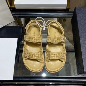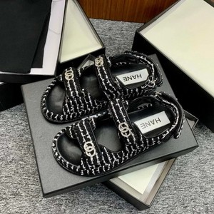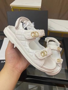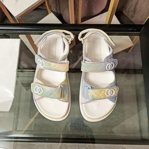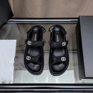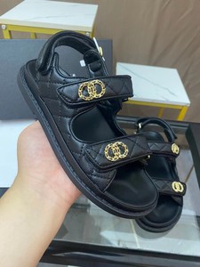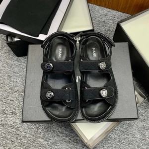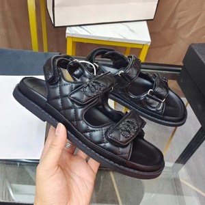 小香风双C魔术贴凉鞋女真皮2025夏新款运动荔枝纹厚底罗马沙滩鞋