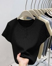 多巴胺独特漂亮的小上衣夏气质轻奢高级感减龄蓝色冰丝V领短袖T恤