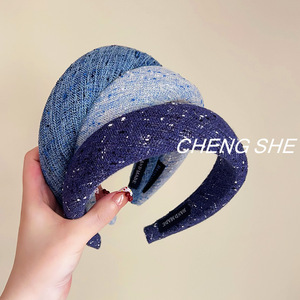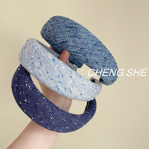 小香风蓝色系发箍女日常外戴海绵发捆高级感海绵头箍高颅顶发窟
