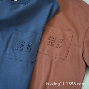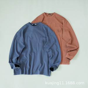 海外服装批发mumu25新款复古水洗表袋刺绣字母长袖T恤男女 (原标)
