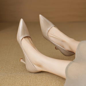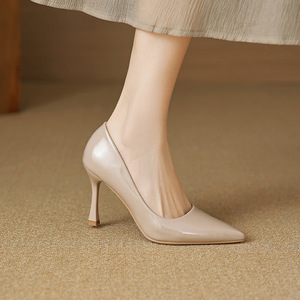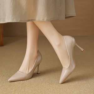 裸色高跟鞋尖头细跟浅口百搭优雅气质四季百搭