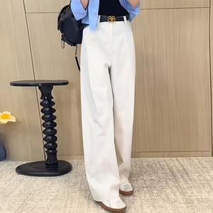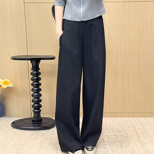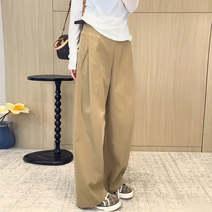 公式写真 ファッション カジュアル パンツ レディース 2025 春と秋 ハイウエスト ゆったり 痩身 シンプル 通勤 万能 ストレート ワイドレッグ パンツ