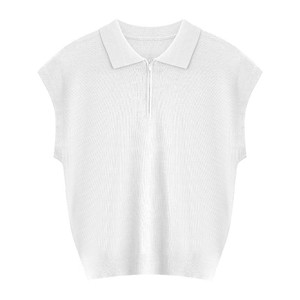 PINKEEN蓝色polo领针织短袖女夏季2025新清爽老钱风百搭套头上衣