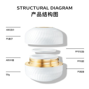 50g;中套顶片电镀+瓶身内喷珠光白;PS+ABS+PP