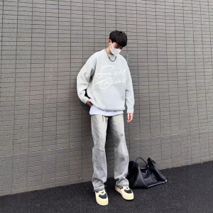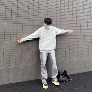 アメリカンレトロレタージャカードぬいぐるみラウンドネックセーターメンズルーズレイジーウォームセータートレンディブランドカップルジャケット