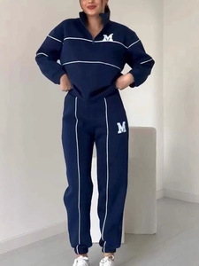 2025 ヨーロッパとアメリカの国境を越えた人気の女性の長袖スウェットシャツレターホットプリントズボンジッパーカジュアルスポーツツーピーススーツ