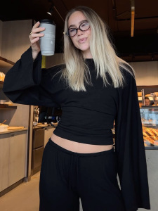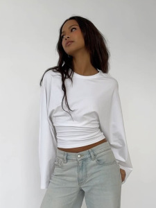 美式个性街头休闲圆领套头宽松上衣慵懒风百搭时尚露脐长袖T恤