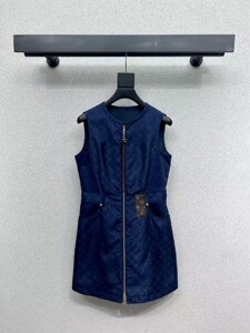 25ss新款高品质版型L家无袖印花半拉链经典连衣裙有型气质收腰显