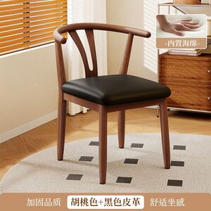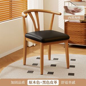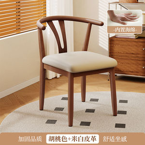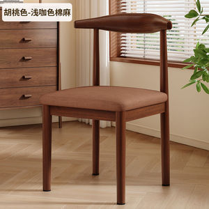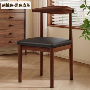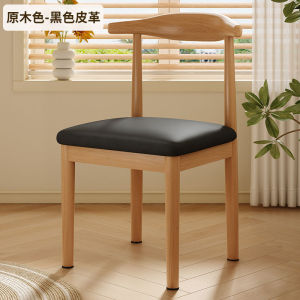 太師椅子ホームダイニングチェアモダンシンプルなレストランダイニングテーブルスツール背もたれ商業牛角無垢材アイアンティーチェア