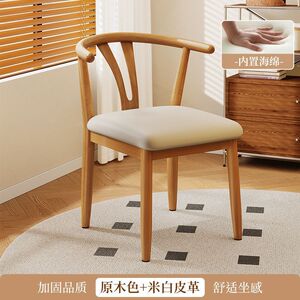 【品質アップグレードモデル】ウッドカラー+ベージュ耐摩耗レザー-太子椅子