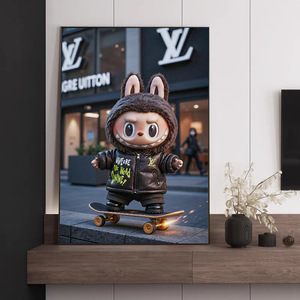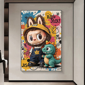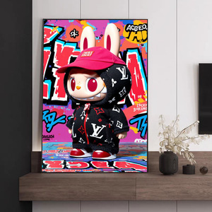 潮流拉布布挂画客厅玄关墙labubu装饰画可爱卡通壁画桌面艺术摆件