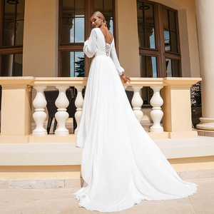 クロスボーダー AliExpress ライトウェディングドレス気質ディープ V シンプルエレガント長袖トレインロングスカート花嫁ストリート写真