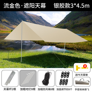 シルバープラスチックキャノピー3*4.5M、ピクニックマット+ハンマー付き