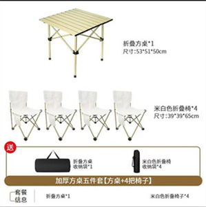 ベージュ角テーブル+ベージュ折りたたみ椅子4脚