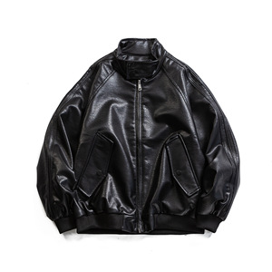 SpaceHunter美式潮牌春秋季新款男女pu皮休闲夹克立领外套E3J072