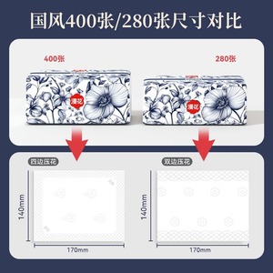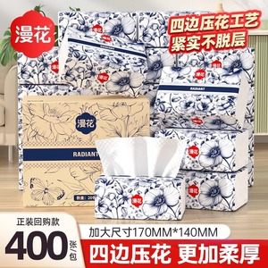 マンフラワー ティッシュペーパー 400枚 フルボックス 家庭用ペーパータオル ナプキン 大型パック トイレットペーパー 木材パルプ増粘フェイシャルティッシュ