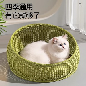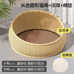 藤编猫窝四季通用开放式猫咪屋猫床夏季猫咪凉窝手工编织猫咪用品