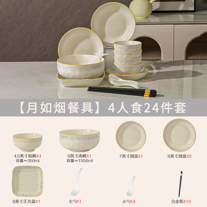 碗碟餐具套装高颜值釉下彩陶瓷碗盘家用乔迁轻奢饭碗乔迁餐具批发