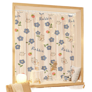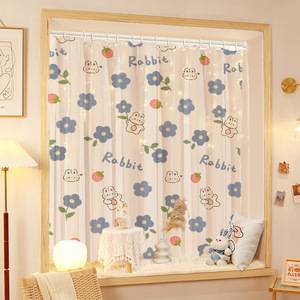 免打孔安装简易窗帘卧室遮光带杆整套小窗户飘窗遮挡布出租房门帘