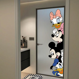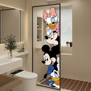 卡通米奇厨房玻璃门贴纸卫生间推拉门贴浴室家用防撞透明装饰贴画