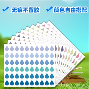 取り外し可能な粘着読書注釈ステッカー、カラフルな雨滴読書ステッカー、水滴ステッカー、雨滴インデックスステッカー、注釈ハンドブック、手書き可能