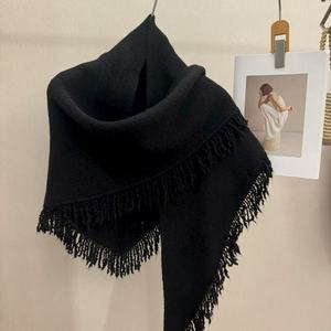 韩国流苏纯色羊毛三角巾围脖针织围巾大衣坎肩外披冬季