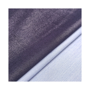 40s梭织平纹弹力仿牛仔面料 205g混纺涤纶人棉仿牛仔外套衬衫布料