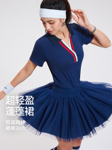 クロスボーダー新しいテニススカート女性の二層メッシュふわふわバドミントンスカート露出防止ランニングフィットネススカートスポーツショートスカート