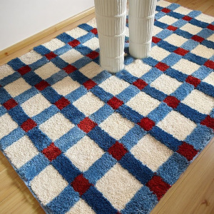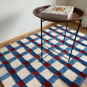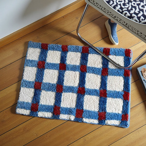 ins中古复古韩式海蓝格纹博主卧室客厅衣帽间簇绒地毯植绒地垫