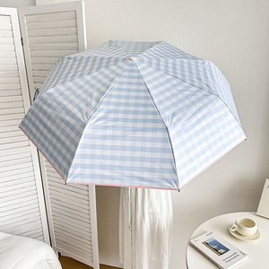 小清新格子折叠雨伞防晒防紫外线黑胶遮阳伞全自动晴雨两用太阳伞