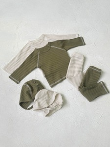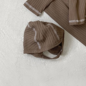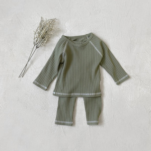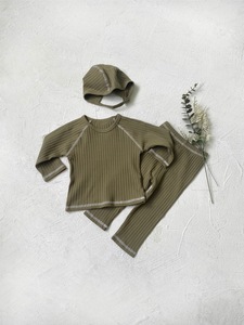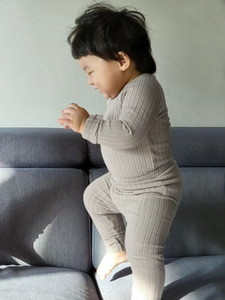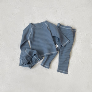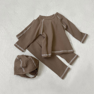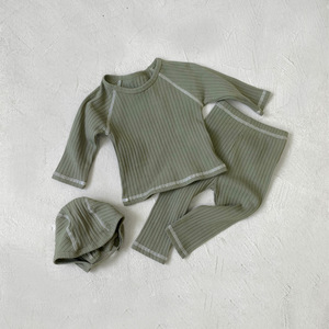 2025秋款婴童a类软糯粗坑条纯色加厚弹力T恤上衣+打底套装睡衣