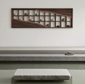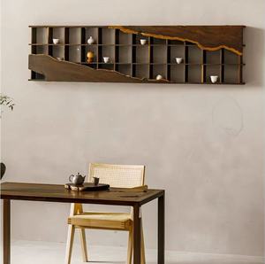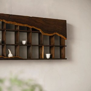 侘寂风老榆木博古架古董架储物架壁挂式茶杯架多宝阁实木置物架