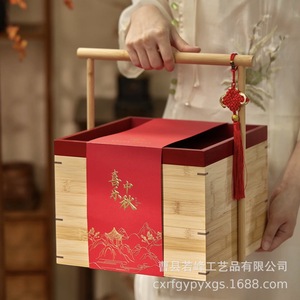 木质月饼盒手提双层点心糕点包装盒伴手礼提篮中秋节月饼礼品盒