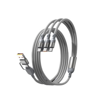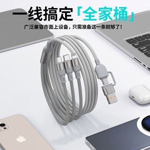 100W编织二拖三快充数据线适用iphone五合一TYPE-C华为尼龙编织线