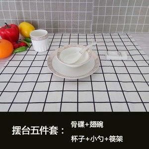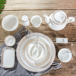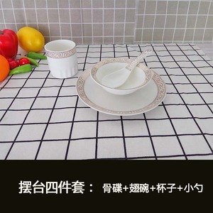 ホテルテーブル食器4点セットヨーロピアンスタイルホテル用品ボックスクリエイティブ金縁プレートと食器セラミックセット