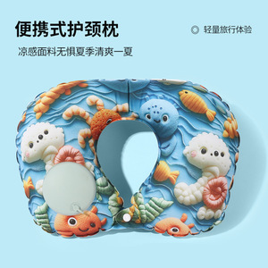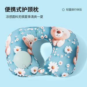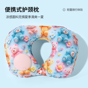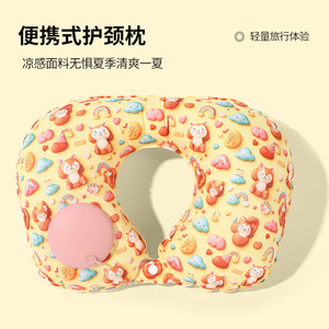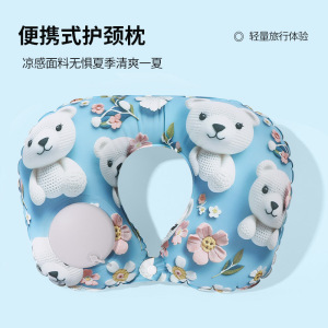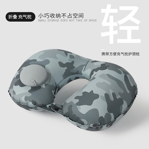 インフレータブル枕旅行ポータブルネックピロープレスインフレータブルU字型枕旅行三宝ネックピローは航空機枕を収納できます