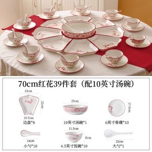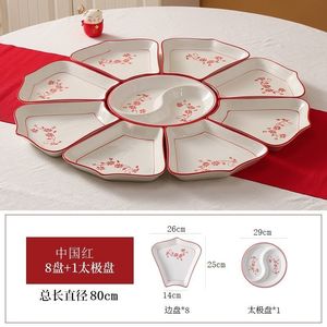 中国红团圆拼盘餐具组合过年陶瓷盘家庭聚餐圆桌碗碟套装乔迁视泡