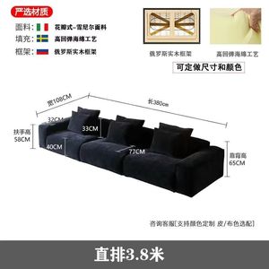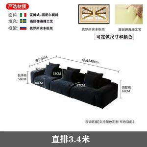 イタリア豆腐ブロックストレートファブリックソファ黒小さなリビングルーム新しいダウンモダンシンプルシェニール