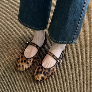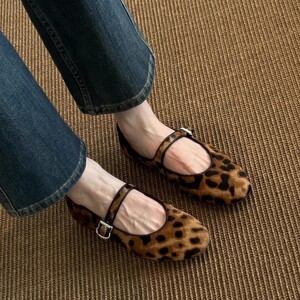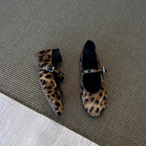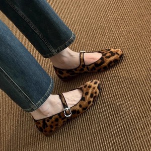 シープスキンバージョン〜ニッチヒョウ柄ワンラインバックルメリージェーンシューズ2025新作夏レトロラウンドトゥフラットシューズ