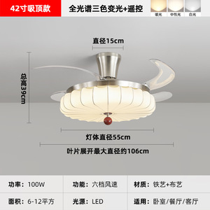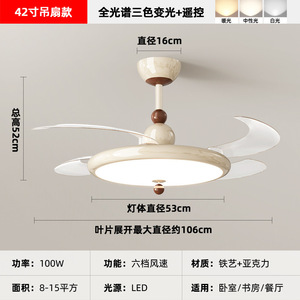新款2025胡桃木色风扇灯复古隐形餐厅吊扇灯中古卧室风扇护眼灯具