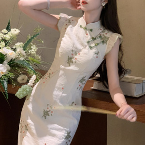 2025夏新款设计感国风新中式碎花拼接改良旗袍刺绣连衣裙两个版本
