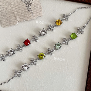 施家华子手链超闪轻奢小众韩系多巴胺氛围感饰品女可调节华子耳钉