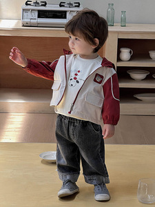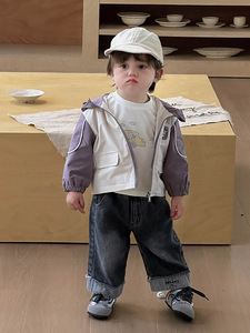 ボーイズカーゴジャケット 2025 秋の新作幼児服ベビーボーイ秋服漫画フード付きトップカテゴリー a