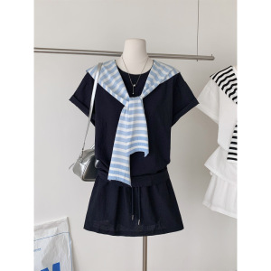 MILLAIDI 韩系针织披肩防晒上衣短袖T恤女夏季百褶裙半身裙两件套