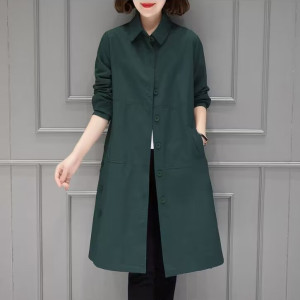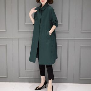 纯色洋气中长新款衬衫韩版防晒风衣女春秋装外套时尚早秋百搭上衣