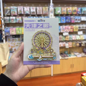 天津文创紫色可旋转摩天轮冰箱贴小船可滑动高颜值天津之眼伴手礼
