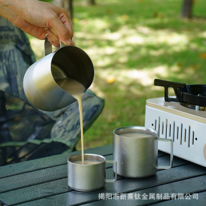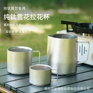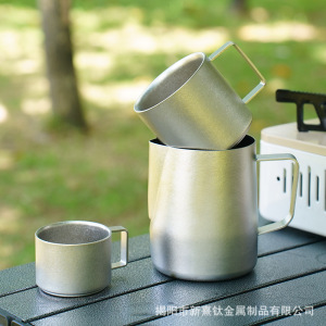 纯钛户外银色啤酒杯便携野营水杯露营饮料杯单双层结晶纯钛咖啡杯
