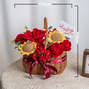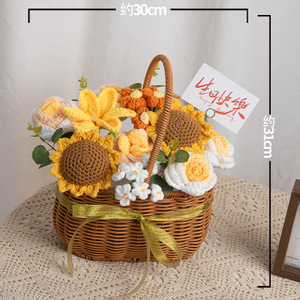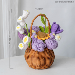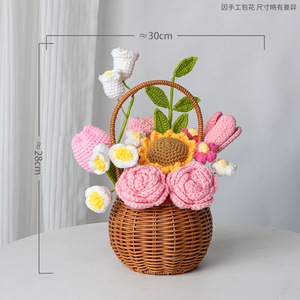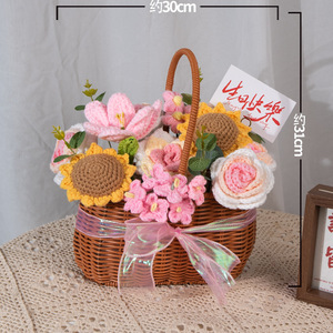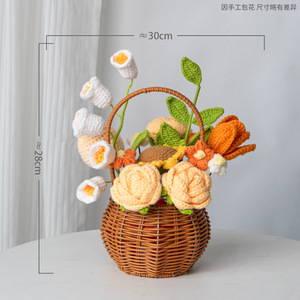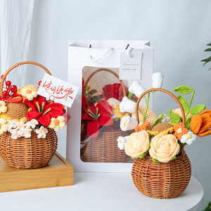 郁金香玫瑰针织花束手提花篮插花摆件闺蜜生日乔迁礼物装饰摆件花