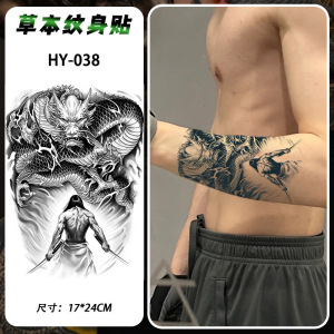 高级感草本纹身贴男防水女持久果汁贴纸 手臂腿部腰部日式老传统