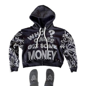 ヨーロッパとアメリカの貿易クロスボーダースウェットシャツカーディガンホットダイヤモンド発泡プリントパターンストリートウェアトレンディなレトロパーカーバッチ